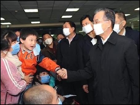 10月31日溫家寶總理去北京兒童醫(yī)院看望醫(yī)護人員和患者也不得不戴上口罩