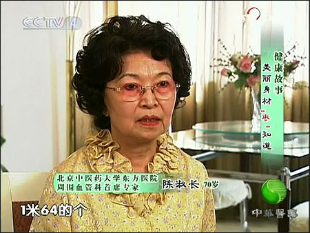 2009年10月31日,中央電視臺(tái)《中華醫(yī)藥》欄目組,制作了一期為"美麗身材 "棗”知道”的養(yǎng)生節(jié)目。本次受訪人物再次是我們前期為大家推薦的,北京中醫(yī)藥大學(xué)東方醫(yī)院周圍血管科首席專家 陳淑長(zhǎng)教授?,F(xiàn)年70歲的她,為何還能擁有如此凹凸有致的迷人身材?這其中又有什么不為人知的養(yǎng)生秘訣,就讓我們與您一起來(lái)揭曉吧!