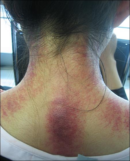 既然是因?yàn)槿樗岫逊e而造成的經(jīng)絡(luò)堵塞,那么,我們刮開不就行了嗎?其實(shí)道理就這么簡單。下面給大家看一組刮脖子出痧的圖片。