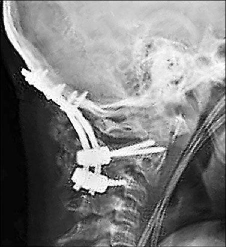 鈦合金的鋼釘被植入了頸椎