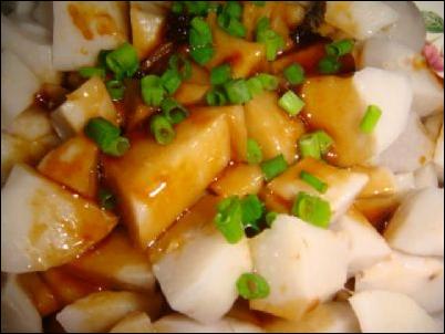 ??? 芋艿150克,蔥少許。