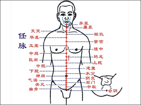 在推任脈之前,讓我們還是先來(lái)了解一下什么是任脈,它的循行路線是如何行走的?在中醫(yī)中常會(huì)提到的一個(gè)名詞叫“奇經(jīng)八脈”,那么現(xiàn)在我們所說的任脈就是屬于奇經(jīng)八脈中的一員,它起于小腹內(nèi)胞宮,下出會(huì)陰毛部,經(jīng)陰阜,沿腹部正中線向上經(jīng)過關(guān)元等穴,到達(dá)咽喉部(天突穴),再上行到達(dá)下唇內(nèi),左右分行,環(huán)繞口唇,交會(huì)于督脈之齦交穴,再分別通過鼻翼兩旁,上至眼眶下(承泣穴),交于足陽(yáng)明經(jīng)。