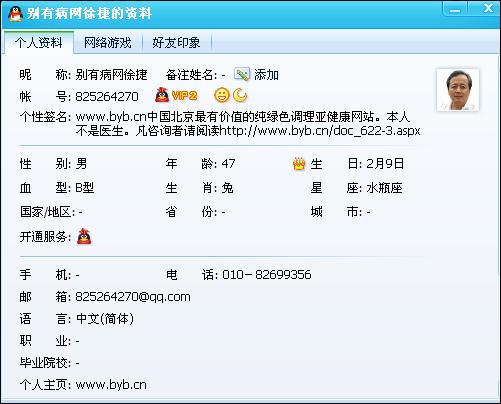 很多網(wǎng)友加我的QQ號(hào)后,上來第一句話就是:“你是做什么的?”我就很奇怪,你不知道我是做什么的,為什么要加我QQ呢?后來我才知道,肯定他是從朋友那得到了這么一個(gè)號(hào)碼,人家可能也沒有和他說清楚是怎么回事。只是我覺得這類的網(wǎng)友,至少應(yīng)該先看看我的QQ資料以后,再與我溝通,這樣大家的談話就比較容易了。