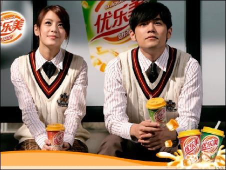 江語晨周杰倫代言的喜之郎優(yōu)樂美奶茶廣告被各大電視臺反復(fù)播放