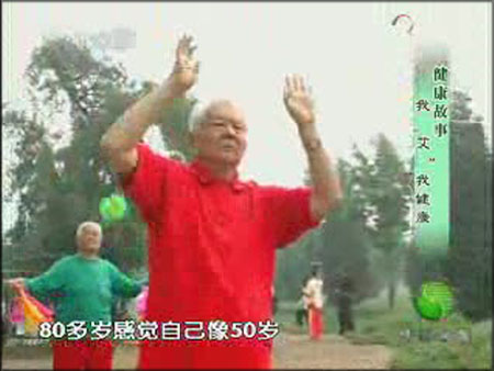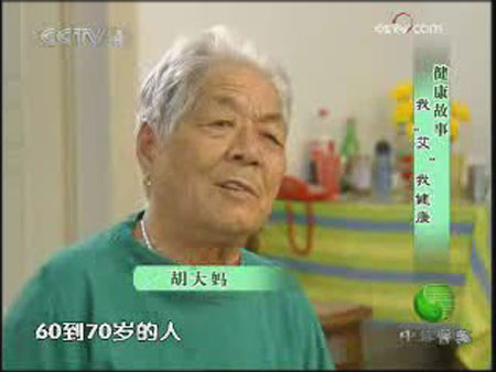 ? 2009年5月,中央電視臺《中華醫(yī)藥》欄目組,制作了一期為“我“艾”我健康”的節(jié)目。本次受訪人物是家住北京的胡大爺和老伴。兩位老人現(xiàn)今已有80多歲、但身體還很健康且手腳靈活,而且經(jīng)常在公園里抖空竹,形成一道很有特色的風(fēng)景線,令周邊的人十分羨慕。那么究竟這兩位老人有著怎樣的養(yǎng)生秘訣,還是家中藏著什么可以延年益壽的法寶?就讓我們一同來揭曉吧!