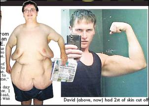 由于大衛(wèi)在短時(shí)間內(nèi)減去了如此多體重,令他身上多出了大量松弛的皮膚。不久前大衛(wèi)又接受拉皮手術(shù),切掉了身上大約12.7公斤多余的皮膚。此外,他還接受了牙科手術(shù),換上了整齊潔白的烤瓷牙。現(xiàn)在,大衛(wèi)的體重只剩下了95公斤,渾身都是結(jié)實(shí)勻稱的肌肉,不久前還當(dāng)上了健身教練。