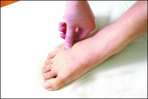 足臨泣穴就在第四腳趾和小腳趾之間縫的終點(diǎn),取穴方法是將手指從四腳趾和小腳趾之間的縫向腳背方向推,推到有骨頭的邊緣時(shí)就是足臨泣穴。