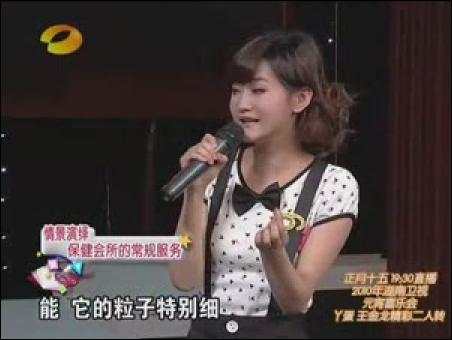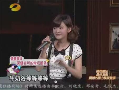 如上圖。大家還記得在1月27日,陳煥然第一次上百科全說節(jié)目時,那個天然美女--點點嗎?如今,她正式在新的百科全說中亮相,扮演了一名美容院的服務(wù)生,向方瓊推銷她的服務(wù)項目,包括干洗頭、精油按摩、泡澡等等,馬悅凌扮作方瓊的健康顧問,一一點破這些美容項目的騙人之處。