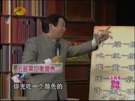 在3月15日的節(jié)目中,張悟本重點講了中醫(yī)治病的原則順序是:食砭針酒藥,以及“辯證施治,對癥下藥”的問題。要把吃出來的病,吃回去。