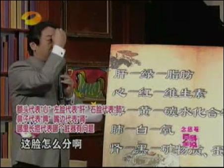 張悟本在講人臉的不同區(qū)域代表著人各臟器的病