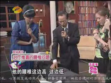 謝教授現(xiàn)場為主持人維嘉治療腰椎問題