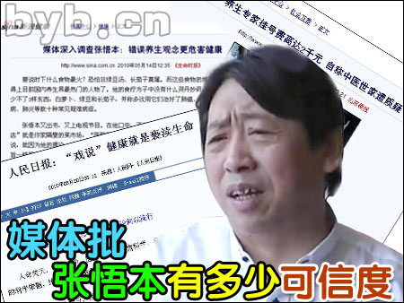【byb.cn XJ】 現(xiàn)在關(guān)于張悟本的負(fù)面新聞?wù)婵芍^鋪天蓋地,但不少媒體記者,基本上沒有進(jìn)行深入的實(shí)地調(diào)查,人云亦云,抓不住要點(diǎn),甚至有的就是為了走過場,走流程,炒作自己。