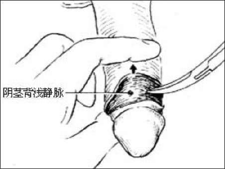 局麻或陰莖海綿體麻醉;小兒可加基礎(chǔ)麻醉[圖1 ⑴ ⑵]。
