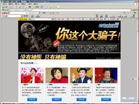 如今,這種趨勢有擴大化的傾向。搜狐網居然推出了這樣一個專題“你這個大騙子”http://health.sohu.com/s2010/pianzi/,將矛頭指向了幾乎所有當紅的養(yǎng)生名人身上,包括了張悟本、馬悅凌、中里巴人和楊奕。把他們統(tǒng)稱為“神騙”。我不知道這從法律上來看,算不算侵犯個人名譽權。作為一個門戶網站,一個權威媒體,是否有權將這些人定性為“神騙”?這個事,是否是應該由法律說了算呢?