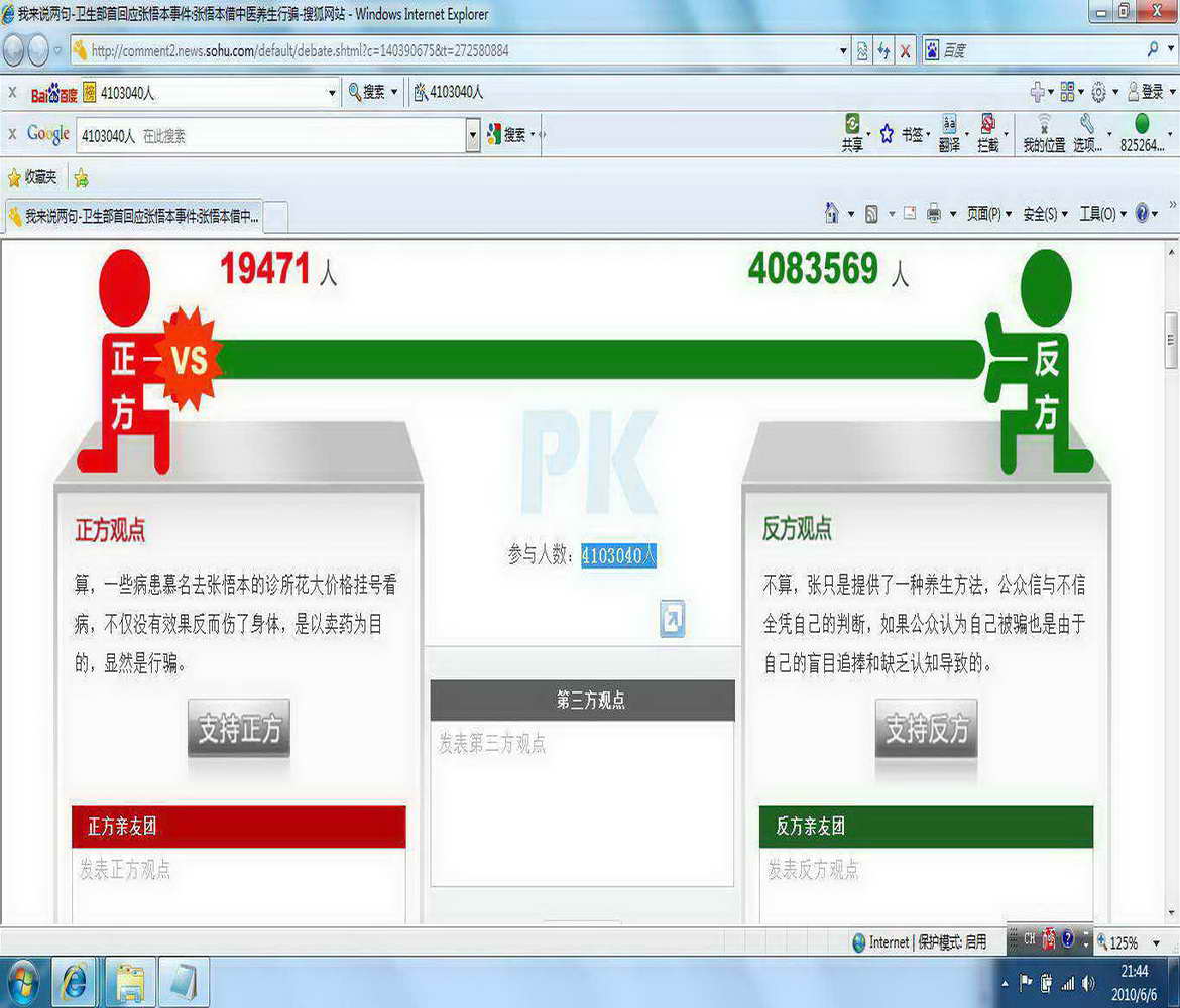 2010年6月5日,針對衛(wèi)生部發(fā)言人認為有人借中醫(yī)行騙一事,搜狐的調查