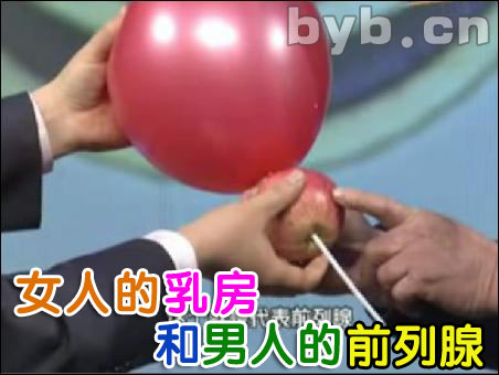 前列腺的位置:下面這張圖,截選自BTV養(yǎng)生堂的一期節(jié)目,上面的氣球,就是人的膀胱,而中間的蘋果,就是前列腺,吸管就是尿道,它剛好穿過蘋果和氣球聯(lián)接。這張圖清楚地表明了前列腺的位置。