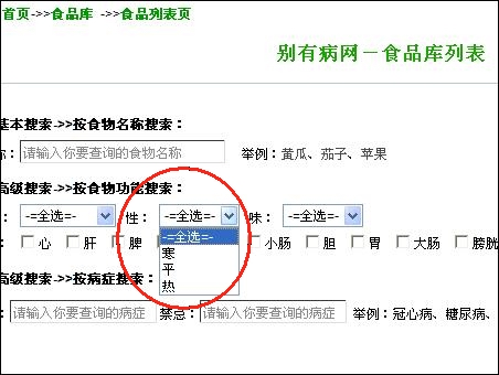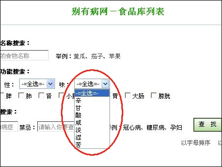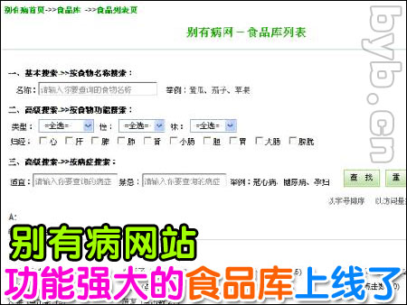 點擊此鏈接,進入別有病網(wǎng)站食品庫:http://m.fangyingfang.com/foodslist.aspx
