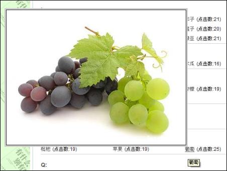 把鼠標放在葡萄處,馬上顯示出食物的圖片