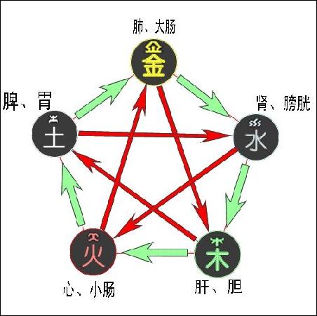什么是中醫(yī)五行?想必別有病網(wǎng)站的網(wǎng)友們都會(huì)隨口回答出來,對(duì),就是木火土金水。它們之間是一種相生相克的關(guān)系,見下圖。綠色箭頭為相生,紅色箭頭為相克。