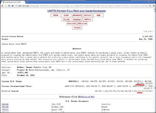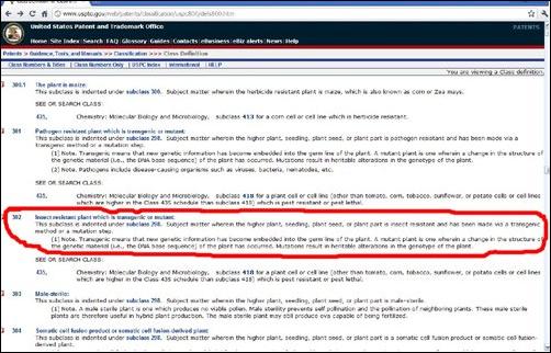 美國專利法規(guī)條款規(guī)定800/302為轉(zhuǎn)基因農(nóng)作物類別
