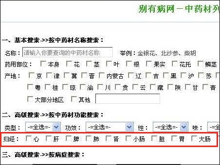 二、強(qiáng)大的搜索查詢功能。這是別有病中藥庫的最大特點(diǎn)。在搜索查詢時(shí),我們分成了兩大類查詢,即“基本查詢功能”和“高級(jí)查詢功能”。