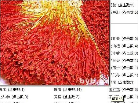 把鼠標(biāo)放在藏紅花處,馬上顯示出藥物的圖片
