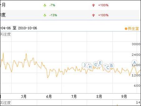 養(yǎng)生堂近半年的百度指數(shù)走勢(shì)