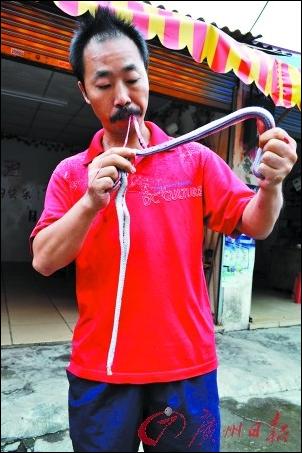 ??? 35歲的羅忠林是貴州省大方縣人,1998年初來到廣東肇慶。他最大的嗜好就是生吃活蛇和蜈蚣,他的這個嗜好已延續(xù)了23年,如今更是到了上癮的程度。