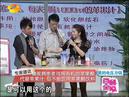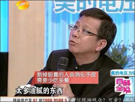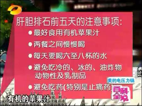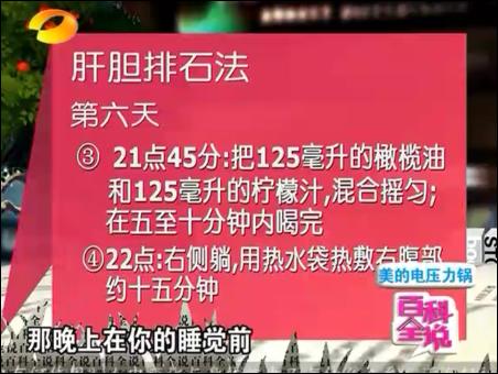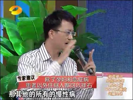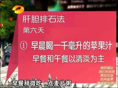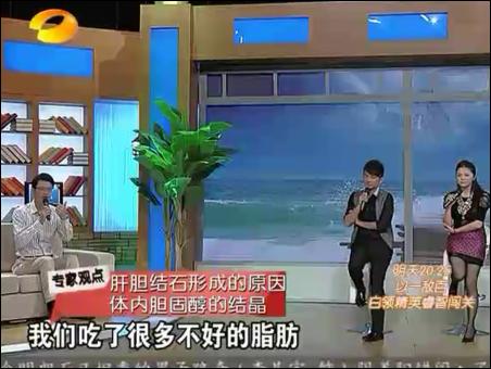 【byb.cn】?2010年11月3日、11月4日,湖南衛(wèi)視百科全說邀請臺灣生機(jī)營養(yǎng)專家、知名膳食營養(yǎng)保健顧問王明勇先生,向全國電視觀眾介紹采用純自然的方法,在七天之內(nèi),排毒肝膽內(nèi)的結(jié)石,沒有任何的副作用。