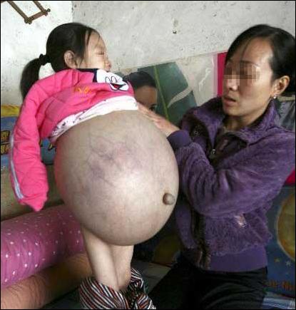 四歲女童外形嬌小,卻長了個“大肚子”,看起來就如同懷雙胞胎的孕婦。