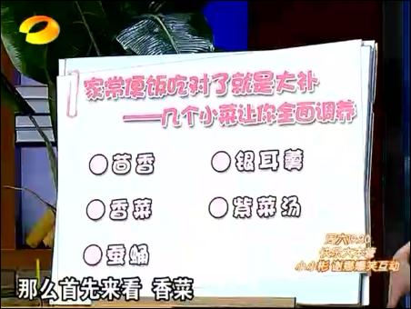 接著昨天的節(jié)目,陳允斌繼續(xù)介紹她的簡(jiǎn)易食療小方法: