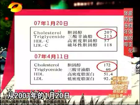 講述一個(gè)割掉膽囊的70歲老人,通過灌腸前后的體檢報(bào)告,顯示甘油三脂大幅度下降