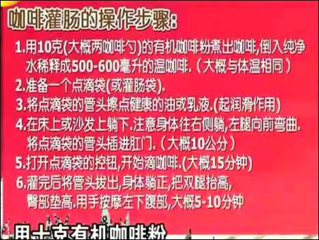 在12月1日的節(jié)目中,王明勇重點(diǎn)介紹了咖啡灌腸的方法。