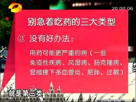 【byb.cn】?2010年12月13日、14日、15日,著名中西醫(yī)專家,上海中醫(yī)藥大學博士生導師、教授何裕民,做客湖南衛(wèi)視百科全說,向全國電視觀眾講解用藥的知識--別急著吃藥!