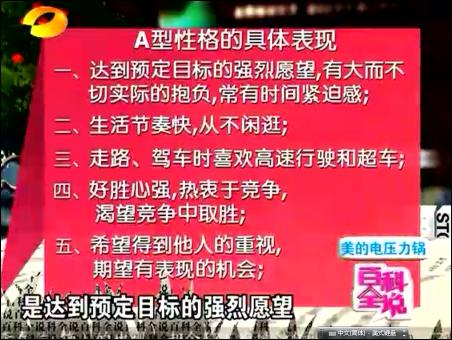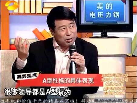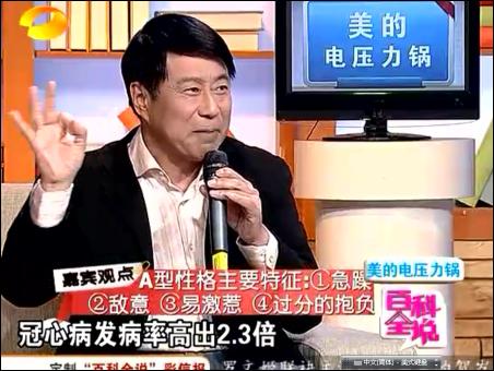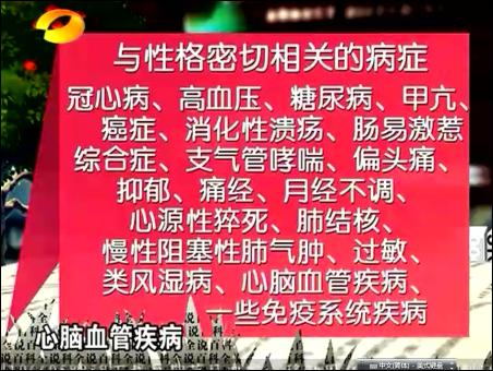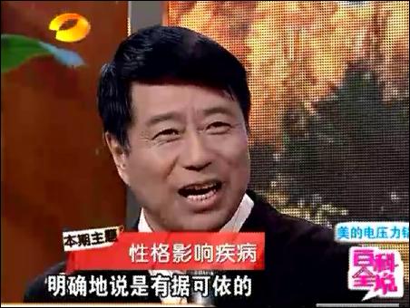【byb.cn】?2010年12月20日、21日,上海中醫(yī)藥大學(xué)博士生導(dǎo)師、教授何裕民,第二次走進(jìn)湖南衛(wèi)視百科全說,向廣大電視觀眾講解性格影響疾病,根據(jù)研究,他把人分成了A、B、C、D、E等各種性格,揭示了性格對(duì)疾病的關(guān)系,什么樣的性格容易得什么樣的疾病,如果從養(yǎng)生角度來說,一個(gè)人,應(yīng)該把屬于自己性格有益的一面保留,而不好的地方克服和糾正,只有這樣,人的身心才會(huì)健康。