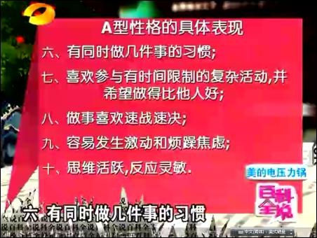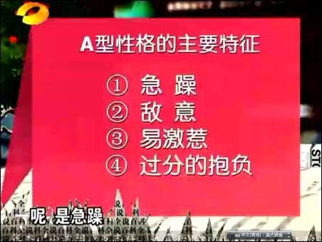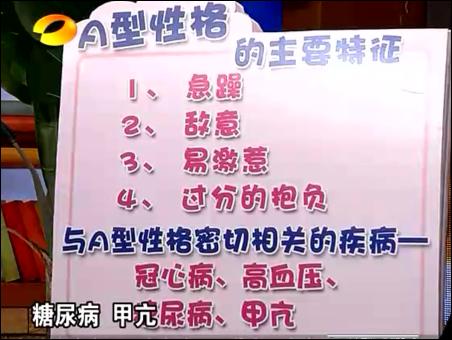 在20日的節(jié)目中,何裕民重點(diǎn)介紹了A、B兩種性格類型人易得的疾病,以及如何調(diào)理。