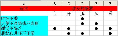 說(shuō)明:上表中,我們大體列舉了相關(guān)的癥狀與臟器的對(duì)應(yīng)關(guān)系。當(dāng)然,一種癥狀,有可能不僅限于上述所列的臟器,還需要求助于專業(yè)人員,綜合和全面的考慮。