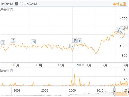 總之,在醫(yī)學、養(yǎng)生這類節(jié)目上,要兼顧收視率和知識點的講解清晰度上,在這點上,BTV養(yǎng)生堂做的就相對比較好。它的受眾主要是中老年人,為了讓這類觀眾聽明白,語言就一定要通俗和淺顯。特別是在春節(jié)以后,悅悅替代王寧主持,并且節(jié)目進行了改版,收視率應該有了明顯的上升,3月15日,養(yǎng)生堂的百度指數(shù)最高值已經達到3610點,并且上升勢頭非常平穩(wěn),超過百科全說,成為電視養(yǎng)生類節(jié)目的NO.1,只是時間問題了。
