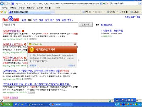 在百度里輸入“馬悅凌官網(wǎng)”出現(xiàn)掛馬提示