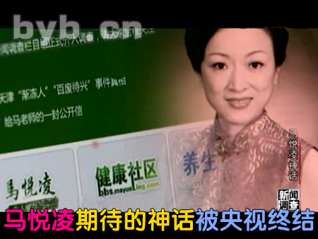 【byb.cn XJ】 2011年7月23日周六晚9:30,央視新聞頻道新聞?wù){(diào)查欄目,播出了題為“馬悅凌神話”的視頻節(jié)目(http://m.fangyingfang.com/doc_2955.aspx)。而這正是之前馬悅凌和廣大馬粉們所期待的節(jié)目。但正是這個節(jié)目的播出,馬悅凌的“神話”最終也被終結(jié)了。因?yàn)?,她的官網(wǎng),也在節(jié)目播出后不久,24日下午被黑,截止發(fā)稿時(shí),仍未修復(fù)!