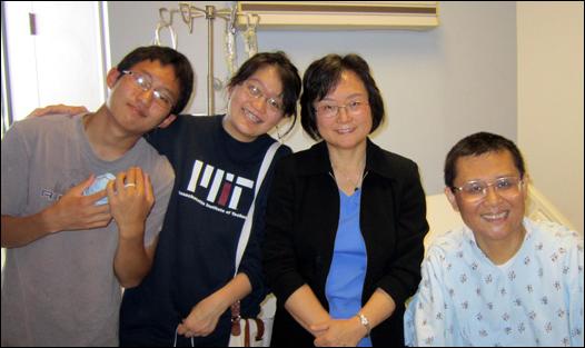 黃建始生前與家人在醫(yī)院的合影,人已經(jīng)明顯消瘦和變形