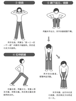 ★在不感到疼痛的限度內(nèi),做10分鐘身體放松體操。