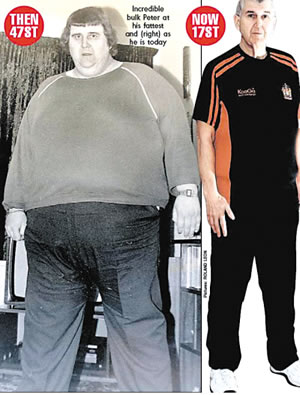 ??? 彼得的家人為彼得的巨大變化感到欣喜,彼得對現(xiàn)在的自己也感到相當(dāng)滿意,他對記者說:“我感到生活真是美好極了?!睋?jù)悉,英國最肥胖的男人是伯明翰市的巴里·奧斯汀,他的體重一度高達(dá)412公斤,不過經(jīng)過減肥后,他現(xiàn)在的體重只剩下273公斤。