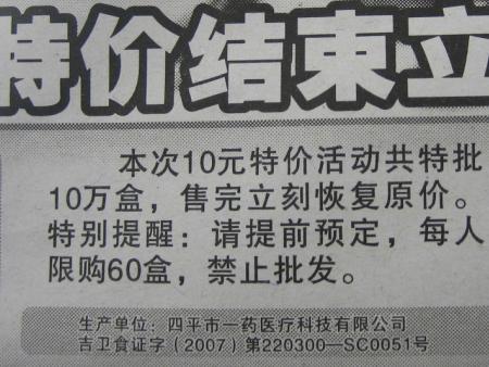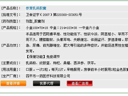 大家想一想,如果是美國進(jìn)口的產(chǎn)品,要有批準(zhǔn)文號(hào);如果不是進(jìn)口的,怎么會(huì)在四平一家藥廠生產(chǎn)美國貨呢?這種瞞天過海,張冠李戴,偷梁換柱之招,讓你防不勝防。這是正規(guī)藥廠出的藥,也有合格證,只要吃不死人,肯定就不會(huì)有大事。但是,如果你叫參茸乳鴿膠囊,會(huì)有人對此有興趣嗎?凡事,只要和美國掛上鉤,就一定是先進(jìn)的東西。這不,美國商務(wù)部長古鐵雷斯訪華,居然帶的是這種產(chǎn)品,竟然還上了央視。