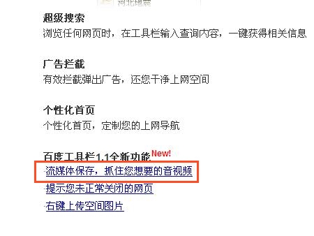 百度1.1版本的工具欄,就有流媒體抓取功能