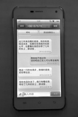 在微博里,小瞿講到“在接客過程中曾幾十次被警察抓到城東派出所去,總以為從此可以解脫了,沒想到一進(jìn)去不問不理地關(guān)你幾個小時,簽個字就叫季××來接我走了,一次次的解脫希望,變成了一次次的失望!因為我聽見表姐和表姐夫討論說他們在派出所拉關(guān)系花掉了幾十萬元,還經(jīng)常和一名叫小黑的警察聯(lián)系?!?/p>