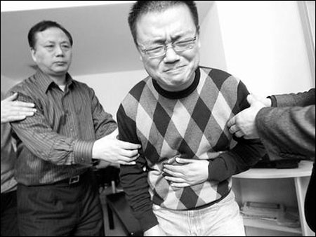 “從昨天開始,我開始感覺到腸子時不時的絞痛,而且疼痛和悶脹開始向左上胸移動,還開始拉肚子了,你幫我給蔡師傅說說給我解穴吧,我怕出大事?!弊蛱焐衔?,2月28日第一個接受點穴試驗的那位電視媒體記者給本報記者打電話。上午11時許,該記者找到了蔡玉建,解穴后,該記者感到輕松了許多。