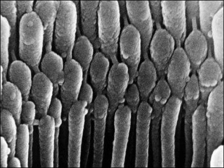 這張圖片看起來好像是在耳朵里面對耳毛細(xì)胞進(jìn)行近距離觀察時拍攝的。耳毛細(xì)胞的主要功能是發(fā)現(xiàn)對聲震作出反應(yīng)時產(chǎn)生的機(jī)械運(yùn)動。