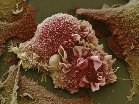 這張異常的肺癌細(xì)胞圖與上面的健康肺部圖片形成鮮明對比。