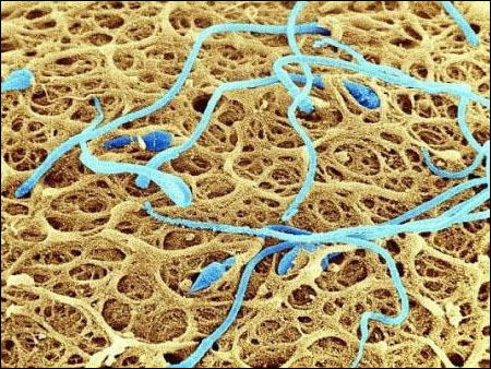 這張圖片上顯示的是大量精子正在爭先恐后地給卵子受精。